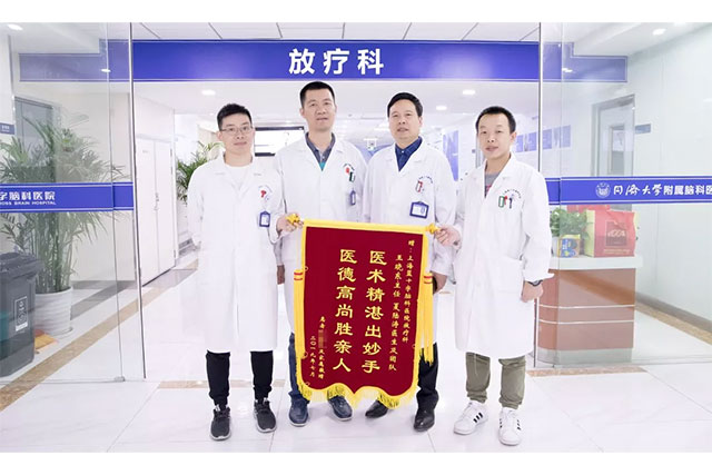 近日,一面表达患者和家属感谢之情的锦旗,送到了上海蓝十字脑科医院放疗科主任王晓东手上,这面锦旗是送给王晓东主任和整个放疗团队的,是对放疗科医护团队专业治疗与贴心服务的肯定。
