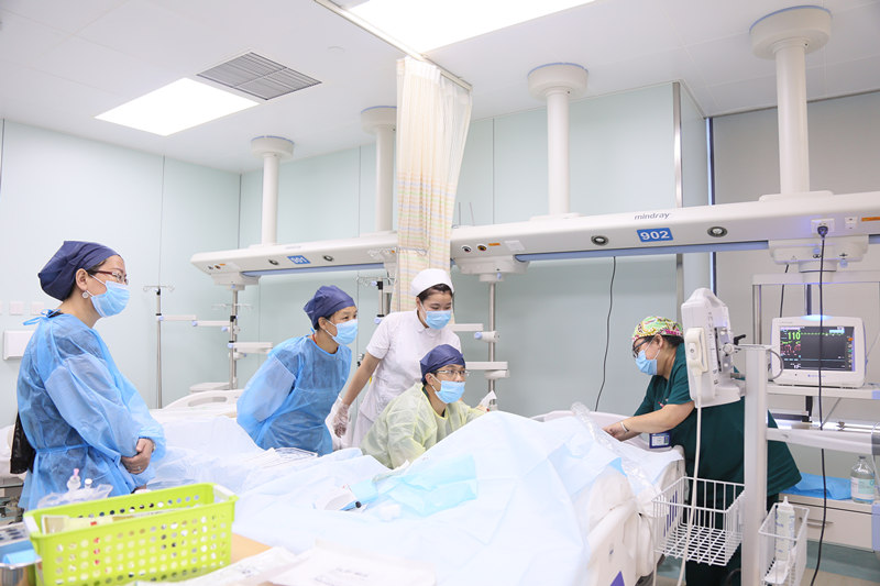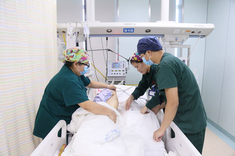 患者XX,脑积水术后患者,张棕智护士长为他进行PICC穿刺(中心静脉穿刺),相当于一次小手术,可以减少对患者血管的不可逆损害、避免静脉炎,同时也可减少患者的负担,但相对于留置针,对护理人员的技术要求提高了。手术服、手套、消毒,严格遵守无菌守则,术中B超探测皮下血管,选取其中相对并发症少的血管进行穿刺,凭借精湛的技艺,张棕智护士长一针准确扎入,在这过程中患者还来及感受到针扎的痛苦,穿刺就已经结束。“虽然是男同志,但做起事来比女同志还认真、心细。”这是手术士护士长许洁对他的评价。