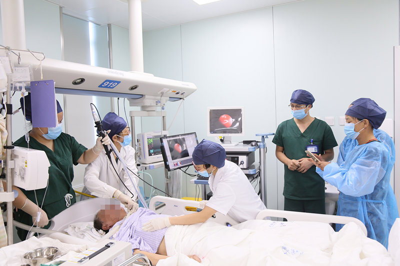ICU 住着的大部分患者,尤其脑干脑梗患者,没有吞咽、咳嗽等反射,痰液堆积,又长期卧床,形成坠入性肺炎,纤支镜治疗能起到很好的治疗作用,李鲁萍主任会定期为他们治疗。患者XX,68岁,患有侧肢硬化症,俗称渐冻人,李鲁萍主任正在为他实施纤支镜治疗,在保障安全的情况下为患者注入少量镇静剂,同时监测心率、血压、氧饱和度等,引流痰液,并在此基础上注入抗生素,起到良好的控制肺部感染的作用,减少患者胸闷不适等痛苦。