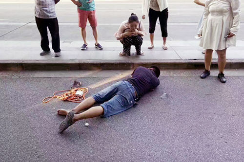罗佳确保该男士安全后,蹲下来仔细观察其发作症状
