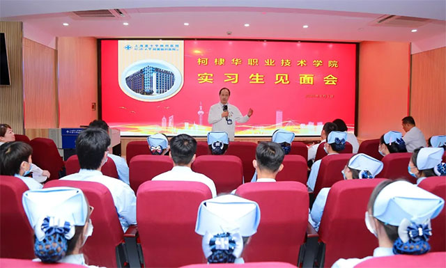 项耀钧院长代表医院领导致辞,项院长对2所院校毕业生来院实习表示热烈欢迎,甘肃卫生职业学院、石家庄柯棣华职业专修学院是二所以护理为专业的院校,建院以来为国家培养了大批护理专业的“新鲜血液”。而上海蓝十字脑科医院护理队伍也有着鲜明特色和光荣传统,近年来,陆续为公司和兄弟医院输送了一批优秀的护理骨干人才。他鼓励广大实习生将学院优秀的学习文化融入到蓝十字护理文化中来,以饱满的热情、积极的心态投身到实习工作当中去,努力学习实践,不断升华自己,今后为护理事业发展贡献自己的一份力量。