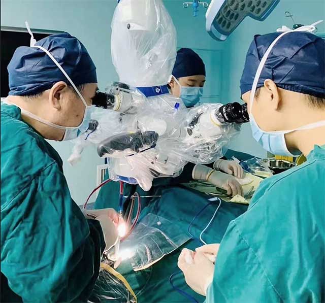 情况紧急,刻不容缓。随后,李士其教授在潘仁龙主任、黄秀夫医生协助下经蝶窦入路成功为患者进行了手术,显微镜下将鞍内肿物切除。