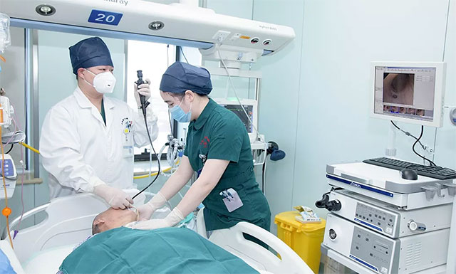 ▲ 李鲁萍主任(左一)为患者进行纤支镜诊疗