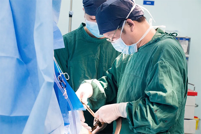 ▲ 刘伟钦主任为患者手术