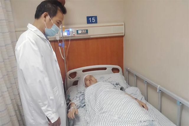 ▲ 刘伟钦主任查看患者术后恢复情况