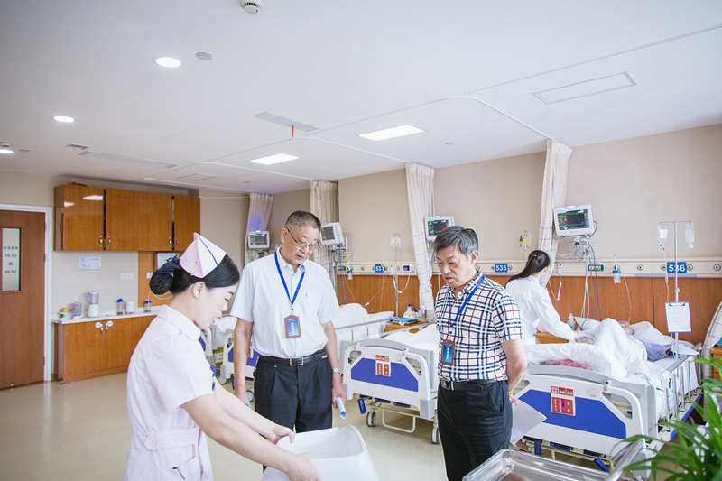 随后监督员走进五病区的ICU病房,郑锦娟护士长向他们简要介绍了该病房的24小时整体护理情况。