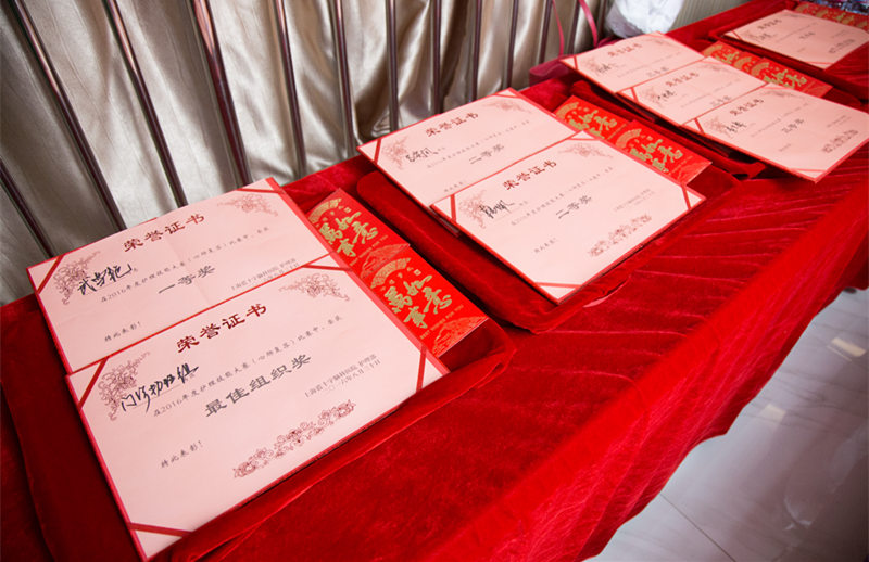 获奖证书现场制作中,赵建华主任写得一手好字