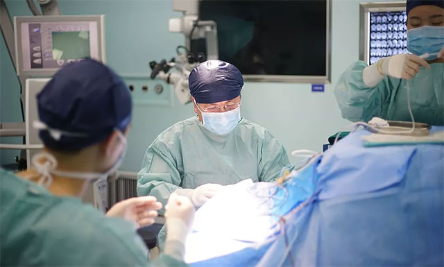 上海蓝十字脑科医院6B主任潘仁龙教授接诊,经过详细地诊断评估,根据其头颅CT数据定制了三维成型的PEEK材料修补板,并于8月2日,潘仁龙主任、吴治群博士专家团队为患者实施了颅骨修补。术中,吴治群博士仔细钝性分离骨膜,分离深筋膜于硬脑膜,完全暴露骨窗,取术前三维塑型PEEK板依据患者颅骨缺损形状调整复位并固定,在吴博士精细的操作和医护人员的通力协作下,手术顺利完成。