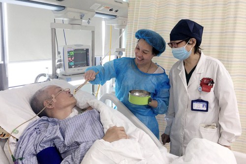 目前,郑元齐从深昏迷状态转为浅昏迷状态,有微小意识,痛觉越来越敏感,对针灸等刺激有弹跳反射,并有明显的情绪反应。眼球可以四周转动视物,一些他亲近的人,熟悉的事物能明显引起他呼吸、心率等生命体征的波动。吞咽和咀嚼功能也恢复良好,经鼻饲管流质饮食转为喂食,可以吃面条、肉类及蔬果等。