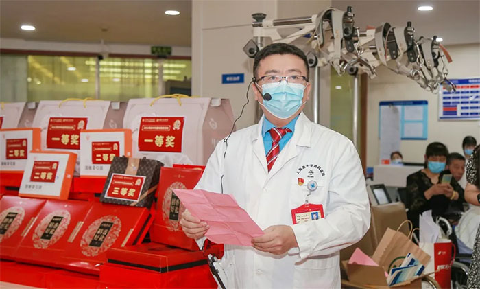 医院党支部书记朱敏、副书记郭荣峰、宣传委员罗佳向获胜队伍表示祝贺,并现场为获胜队颁发奖品。
