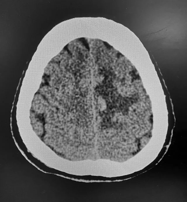 患者三年前曾患脑溢血,既往高血压病史五年,未长期有效控制,高血压3级,最高血压收缩压224毫米汞柱,舒张压118毫米汞柱。双下肢肌力0级,肌张力高。头颅磁共振显示:左侧额顶叶镰旁亚急性脑梗死伴出血。