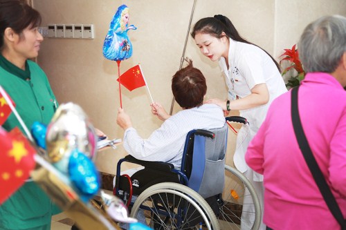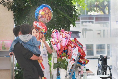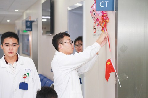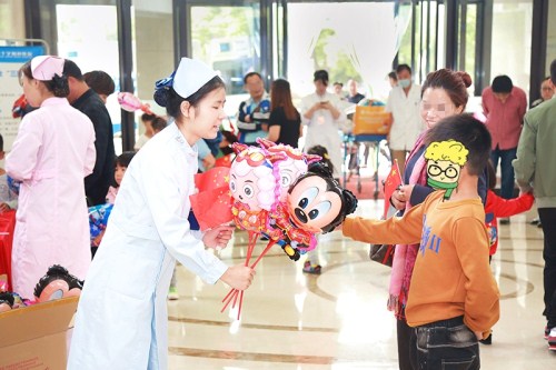 在小国旗和气球的点缀下,医院沉浸在一片节日的祥和气氛中。做完检查的孩子们都得到了自己喜欢的卡通气球。有的是喜羊羊,有的是冰雪女王,有的是米老鼠,有的是钢铁侠。。。活泼可爱的孩子们拿着气球在医院大厅玩耍,就像在儿童乐园那么欢乐。天真的笑脸感染了在楼下散心的中老年住院患者,他们纷纷向护士们要气球,要小国旗,举着卡通气球,感觉身体都更轻盈了。