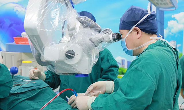 在充分准备并征得家属同意后,李士其教授在吴治群博士、黄秀夫医生协助下为患者行经蝶窦入路垂体瘤切除术,经右侧鼻腔蝶窦入路将肿瘤切除。