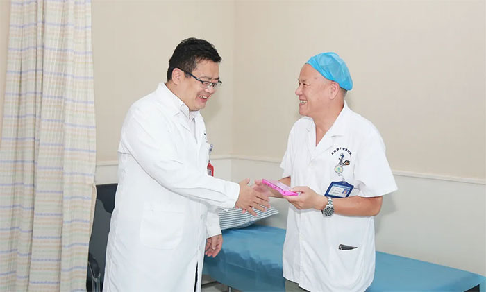 “郭教授节日快乐,你为患者看病,我们来看望你了。”医院党支部书记兼总经理朱敏敲开了神经内科特需专家郭明光教授的诊室大门,并亲手将喜庆的重阳糕送到郭教授的手中。“一上午接诊了20多位病人,差点忘了今天是重阳节了,谢谢医院的关心!”面对医院党支部和工会的灼灼真情,郭教授很是感动。