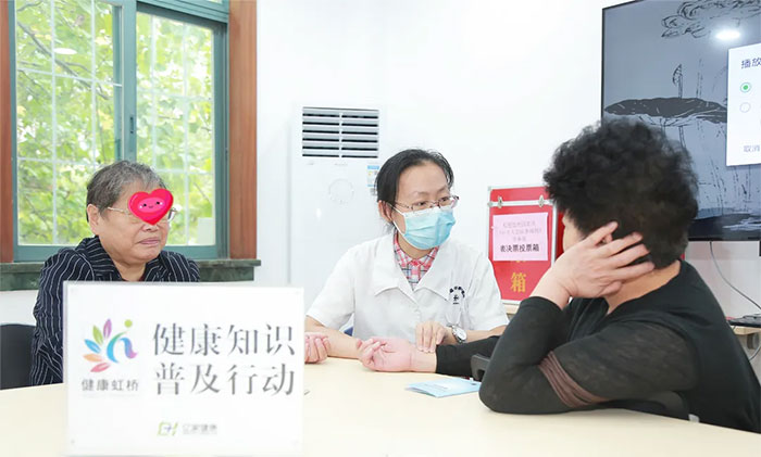 健康讲座临近尾声,赵宇兰医生演示讲解了已传承二百余年 “延年九转法”。跟着节奏,社区居民们认真做起了分解动作。活动结束时,大家仍感意犹未尽,有的居民特意留下请赵医生把脉,寻求老年人日常养生调理的小窍门。