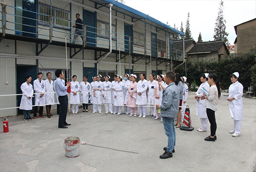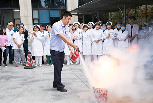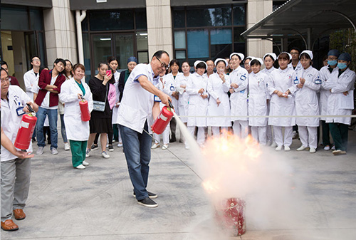 最实用的技巧是将理论变为实践,随后,消防大队的高队长和费老师分别带队对参训的医护人员进行了灭火器的使用指导与演练,在场的医护人员均参与了灭火器灭火演练。