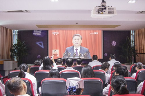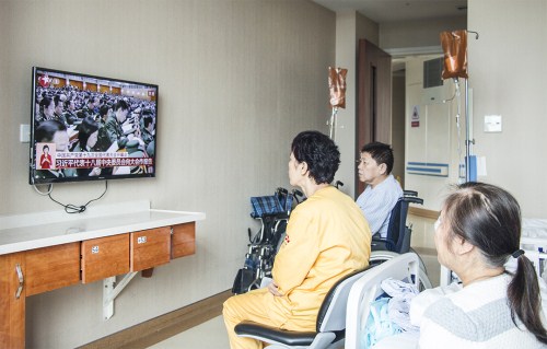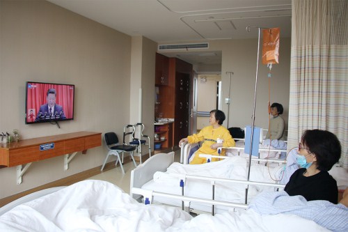 同时,各病区病房患者及家属也通过电视观看了大会直播,喜迎十九大的胜利召开。