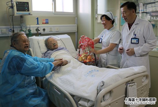 在这一天,上海蓝十字脑科医院住院的老人们并不孤独,他们喜笑颜开,乐不可言。上海蓝十字脑科医院唐镇生副院长、领导专家以及医护人员来到了病房,慰问老人,将爱心果篮献给老人们,为老人们送上节日的祝福,把敬老、爱老、尊老的一份深深的情、浓浓的爱传递给了老人们。老人们为此惊喜不已,万分感动。一位住院老阿婆紧握着唐副院长的手,感激地说:“谢谢蓝十字脑科,谢谢所有的医务人员,时刻关心、关爱着我们,不单是今天的重阳节,在蓝十字脑科的每一天,我们都有着温馨如家的感觉!”