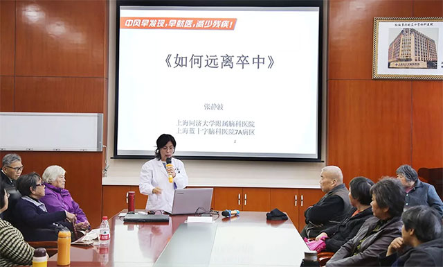 像这样的健康活动还有很多,张静波主任除了做好科室管理和院内患者的诊治工作外,还心系广大的中老年人,一年下来,她参加过大大小小的健康活动就有二十几场。张主任不仅为社区居民面对面健康把脉,还多次为其进行“脑血管疾病防治”的健康讲座,让大家对脑卒中的预防、治疗及后期康复有一个正确全面的认识,从而更好地提高大家对脑血管病、尤其是脑卒中的防治意识。