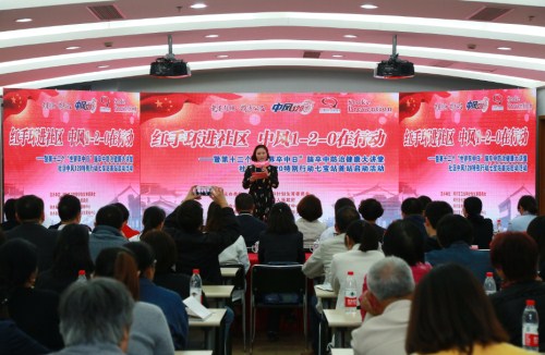 在讲堂上,专家用案例告诉社区百姓“脑卒中”救治是一个争分夺秒的过程,较佳救治时间是病发的4.5小时内,考虑到老百姓对“脑卒中”的重视程度比较低,并且缺乏专业的分辨能力,专家给社区百姓现场普及“中风120”快速分辨法。