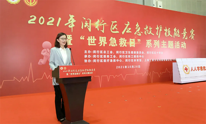 此次技能竞赛由闵行区总工会、区卫生健康委员会、区红十字会共同举办。闵行区人大常委会副主任、区总工会主席倪学斌,区人民政府副区长、区红十字会会长刘艳等领导出席活动。市医疗急救中心副主任陆峰担任竞赛裁判长。开幕式上,区红十字会常务副会长许沁致辞。