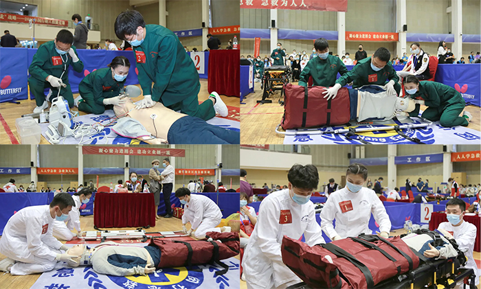 本次竞赛根据不同对象,设立“医务职工组”、“工会干部组”和“企业职工组”三个组别,医务职工组设立心肺复苏+AED(三人)、高处坠落骨折伤病员急救(三人)竞赛项目,工会干部组和企业职工组设立心肺复苏+AED(单人)、创伤救护(两人)竞赛项目。