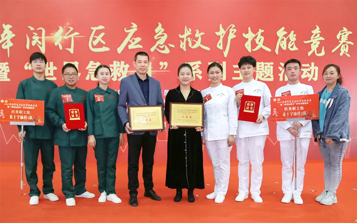 10月26日下午,“2021年闵行区应急救护技能竞赛”在闵行区体育馆举行。经过激烈角逐,上海蓝十字脑科医院选派的两支参赛队在医务职工组15支队伍中脱颖而出,分别获得了医务职工组一等奖和二等奖的好成绩。