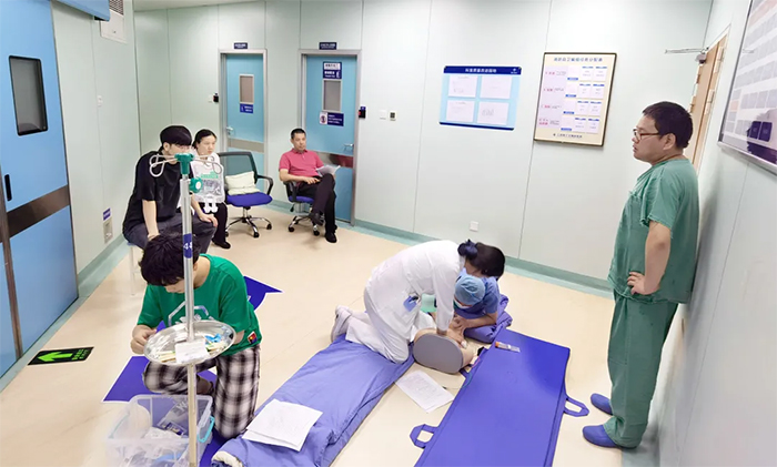 比赛现场,面对实力强劲的竞争对手,上海蓝十字脑科医院年轻的选手们无惧压力、沉着冷静、有条不紊、全情投入、通力协作,裁判则严格根据操作规范进行打分考核。