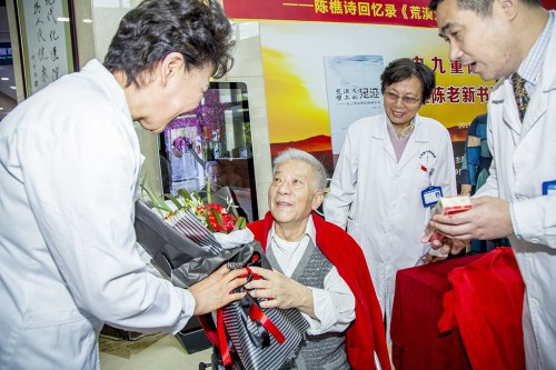 当天,坐在轮椅上的陈樵诗老人精神矍铄,十分开心,不时与读者进行互动交流,同时,不少读者也上台朗读了《荒漠戈壁上的足迹》书中的部分内容。“真的谢谢医院举行这样一个活动,也算是圆了老爷子的一个梦。”陈樵诗老人的家人说。