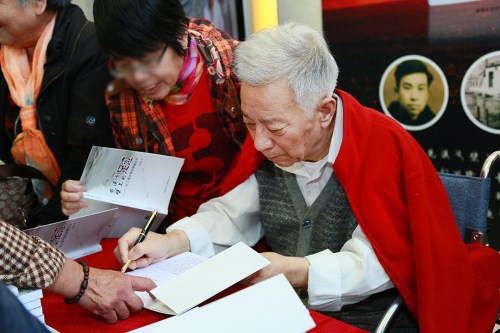 与此同时,一楼大厅内,“陈樵诗回忆录《荒漠戈壁上的足迹》读者见面会”也在进行。见面会一开始,潘耀良副院长郑重将重阳糕递到了老人手里,祝他节日快乐,更预祝读者见面会圆满成功。