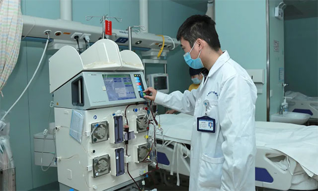 ▲ 医生为患者进行CRRT治疗