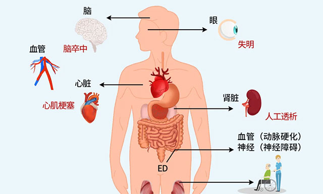 糖尿病危害极大,具体表现为: