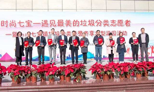 11月15日下午,由七宝镇垃圾分类推进办(以下简称推进办)主办的“时尚七宝——遇见最美的垃圾分类志愿者暨2019垃圾分类荣誉齐享大型游园会”在七宝广场举行。会上,推进办对各类先进单位、居村、优秀志愿者进行了表彰。上海蓝十字脑科医院院办主任毕永益代表医院上台领奖。