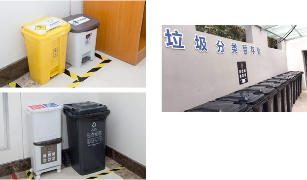医院通过如下方式进行垃圾分类工作:一是多媒体传播宣教,包括院内、院外悬挂横幅、张贴海报、POP等;二是对垃圾分类暂存处进行改造,增设分拣区;三是对垃圾分类容器配置予以规范,进行分类垃圾桶定置与墙面标识张贴;四是加强病区及食堂等处巡查督导,并派专人对垃圾进行末端分拣等,持续提高根源分类质量,实现垃圾分类投放精准。