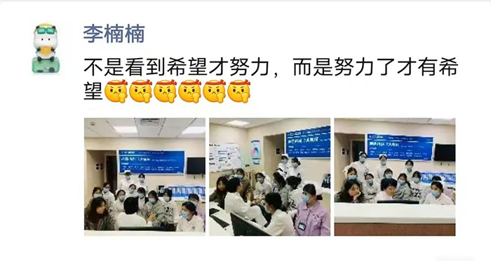 从4月6日JCI复评审启动到今天,全院全员已备战218天,面对更美好的明天,7A病区护士长李楠楠在朋友圈里说道:“不是看到希望才努力,而是努力了才有希望。”