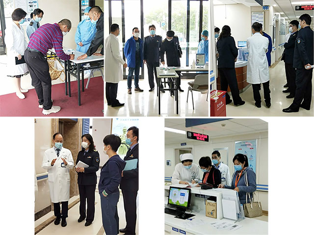 院感防控委员会决定,从四个管道进行防控:中央管控、人员管控、通道管控,重点科室管控等。除了急诊科门口把控人员流动外,还在1楼电梯口进行全天值守,严防通道。院感科每天进行流调统计,在微信院感群里,每天各科室都要上报发热情况及中风险地区人员旅居史,做到有问题及时上报,及时沟通,及时处理,有条不紊地防控疫情,打有准备之战,打胸有成竹之战。