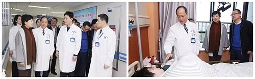 杨德妹副区长一行先后走进ICU重症监护病区和脑血管病区,了解情况,探望患者。