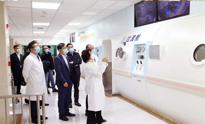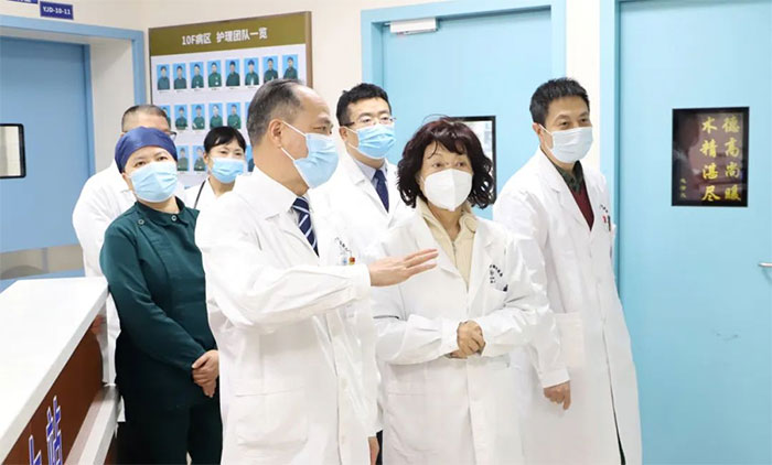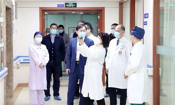 李巍女士先后参观了神经重症脑复苏10楼病区、神经外科重症监护9楼病区、神经内科重症监护8楼病区、脑血管病7B病区、高压氧科、医学影像科、放疗科、DSA血管介入诊疗科等科室,每到一处,李巍女士详细聆听相关介绍,并不时拍照、记录。