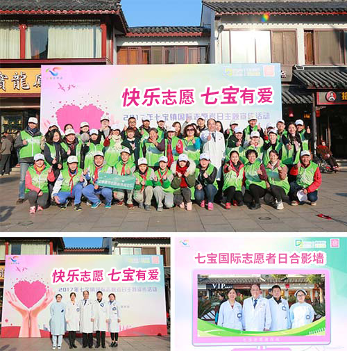 昨天是第32个“国际志愿者日”,由七宝镇文明办主办的2017年“快乐志愿 七宝有爱”国际志愿者日主题宣传活动在七宝老街钟楼广场举行。