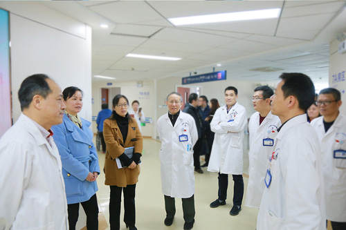 最后,领导们深入医院全数字化 Hybrid-OR 复合手术室、ICU重症监护病区、神经内外科普通病区、神经康复医学科、高压氧科、医学影像科等临床重点科室进行了实地考察。
