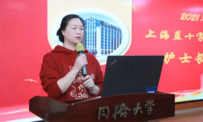 5B病区舒畅护士长在繁忙工作之余坚持学习提升自我,获得“伤口专业护士”适任证书,并代表医院获得“2021年闵行区应急救护技能竞赛”医务职工组一等奖。