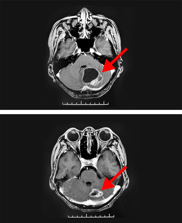 年近六旬的史女士(化名),11年前确诊乳腺癌并进行了手术切除。这些年来,她经过多次放、化疗治疗控制病情,但在2019年11月复查时,发现全身多发骨转移,并立即开展治疗。今年6月,她突然出现头晕等症状就医检查,经外院诊断,明确为左侧小脑半球转移瘤。
