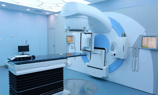 为了在减轻肿瘤患者痛苦的同时,取得比较好的放疗效果,上海蓝十字脑科医院专门引进了目前先进的放疗设备——瑞典医科达 Elekta Synergy全数字化医用直线加速器。这是一款具有图像引导放射治疗(IGRT)能力及容积旋转调强(VMAT)治疗能力的高端放疗设备,可以达到“三精”(精准定位、精准计划、精准治疗)为特征的高能X射线放射治疗。可满足现代放疗时代的技术需求及高级应用,如三维适形放疗(3DCRT)、调强放疗(IMRT)、容积旋转调强治疗(VMAT)、立体定向放疗(SRT)等;在较大限度保护正常组织及器官(OAR)的情况下,提高对肿瘤的照射剂量,缩短治疗时间,提高治疗的安全性,达到精准放射治疗的效果。