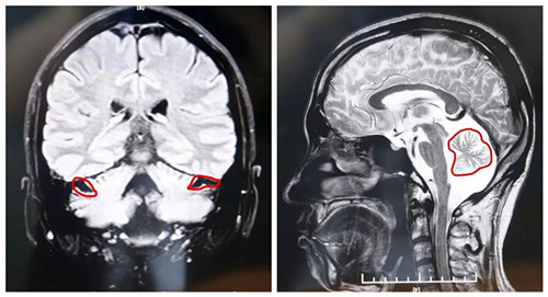 ▲MRI显示,患者小脑萎缩状况明显