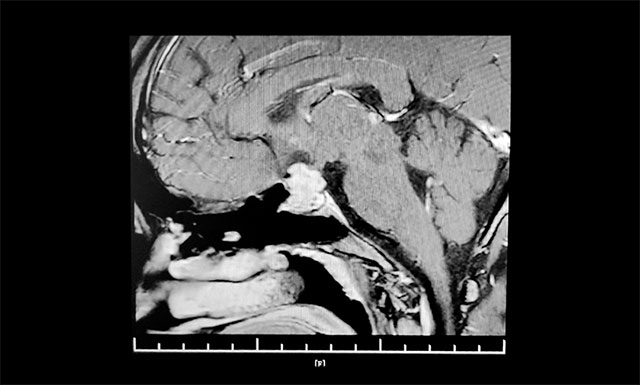 24岁女孩小美(化名)2017年5月无明显诱因出现视力下降,左眼外上视野缺损,并有月经量减少症状,当地医院检查化验提示“泌乳素增高”,结合影像检查,被诊断为“垂体瘤”,随后在外院接受了经蝶垂体瘤切除术。但是2020年初再次出现视力异常情况,到医院复查时才发现垂体瘤复发,体积较之前增大,在该院再次接受了经蝶垂体瘤切除术。但是不幸的是,在之后的三个月、六个月、九个月复查中肿瘤体积都是逐渐增大。为求进一步治疗,小美一家慕名来到上海蓝十字脑科医院,由李士其教授接诊。