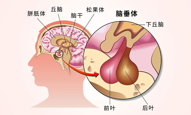 垂体位于大脑底部的中央位置,约重0.6克,虽然只有豌豆一般大小,但其拥有强大的内分泌功能,可分泌生长激素等在内的多种激素,人体的各种生命活动大多离不开它。由于外界刺激、遗传等各种各样的因素,垂体上长出肿瘤,称之为垂体瘤。垂体瘤一旦出现,人体的腺体、器官功能也就跟着乱了套。