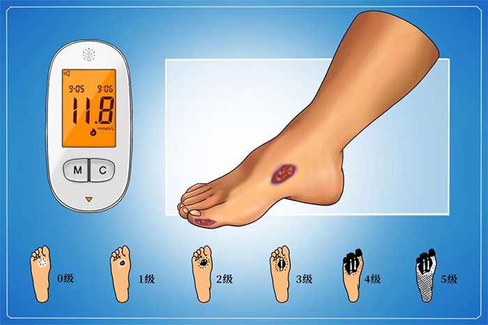糖尿病患者常伴有脂肪、蛋白质代谢异常,长期高血糖可引起多种器官,尤其是眼、心、血管、肾、神经损害或器官功能不全或衰竭,导致残废或者过早死亡。糖尿病常见并发症包括卒中、心肌梗死、视网膜病变、糖尿病肾病、糖尿病足等。