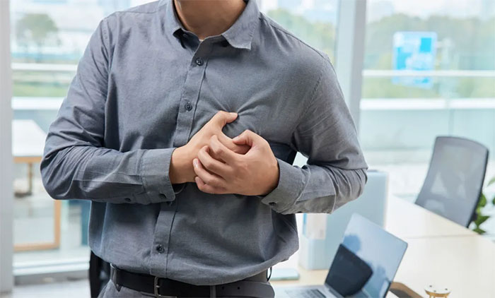 4. 胸闷不适:胸前区出现压迫感、发闷或疼痛。