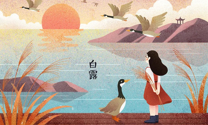 “白露”,天气转凉,寒气渐增,昼夜温差变大,是夏秋交替的重要转折点。