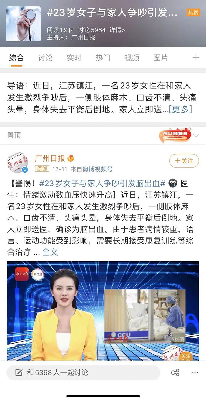 23岁女子吵架后脑出血上“热搜”